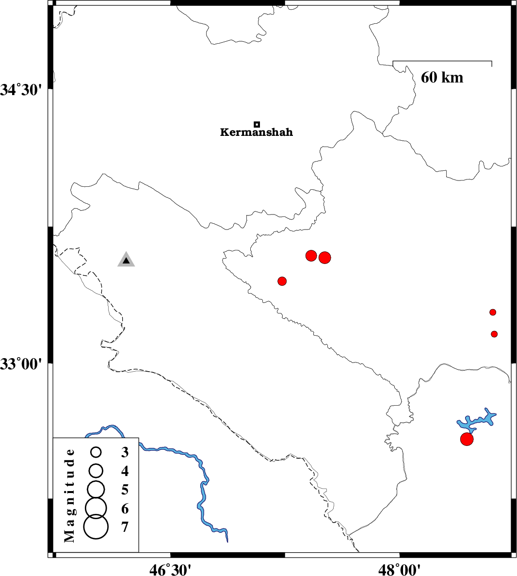 | 2013/07/25 | 09:30:53.0 | 14:00:53.0 | 33.58 | 47.51 | 14 | ML:3.5 | Lorestan Province, 11 km Kuhdasht | ||