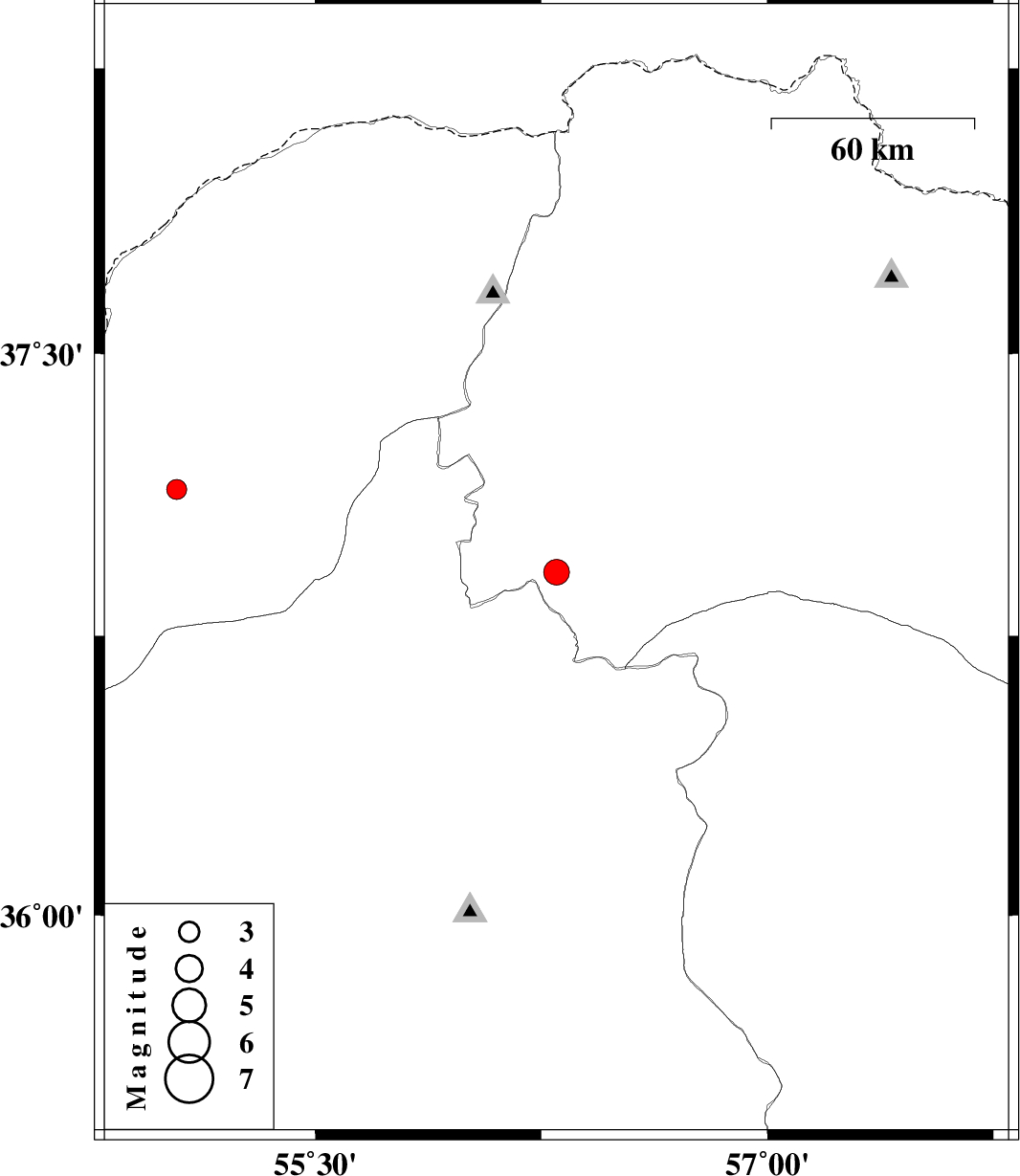 | 2013/08/03 | 13:52:21.1 | 18:22:21.1 | 37.14 | 55.04 | 16 | ML:2.9 | Golestan Province, 14 km West of Azadshahr |
