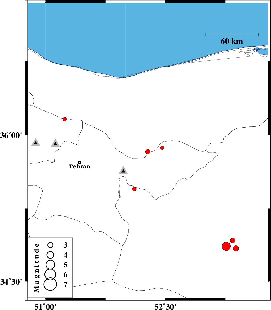 | 2013/08/04 | 16:12:30.7 | 20:42:30.7 | 34.84 | 53.38 | 14 | ML:3.1 | Semnan Province, 81 km South of Semnan | ||