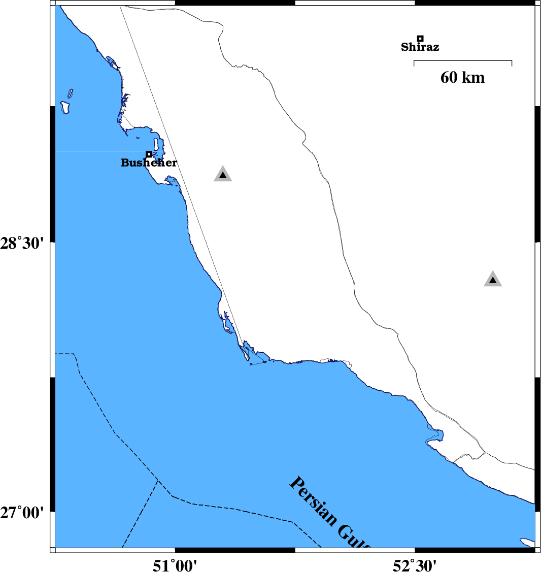 | 2013/08/03 | 13:21:36.6 | 17:51:36.6 | 27.82 | 52.19 | 35 | ML:3.8 | Bushehr Province, 13 km East of Bandar-e kangan |