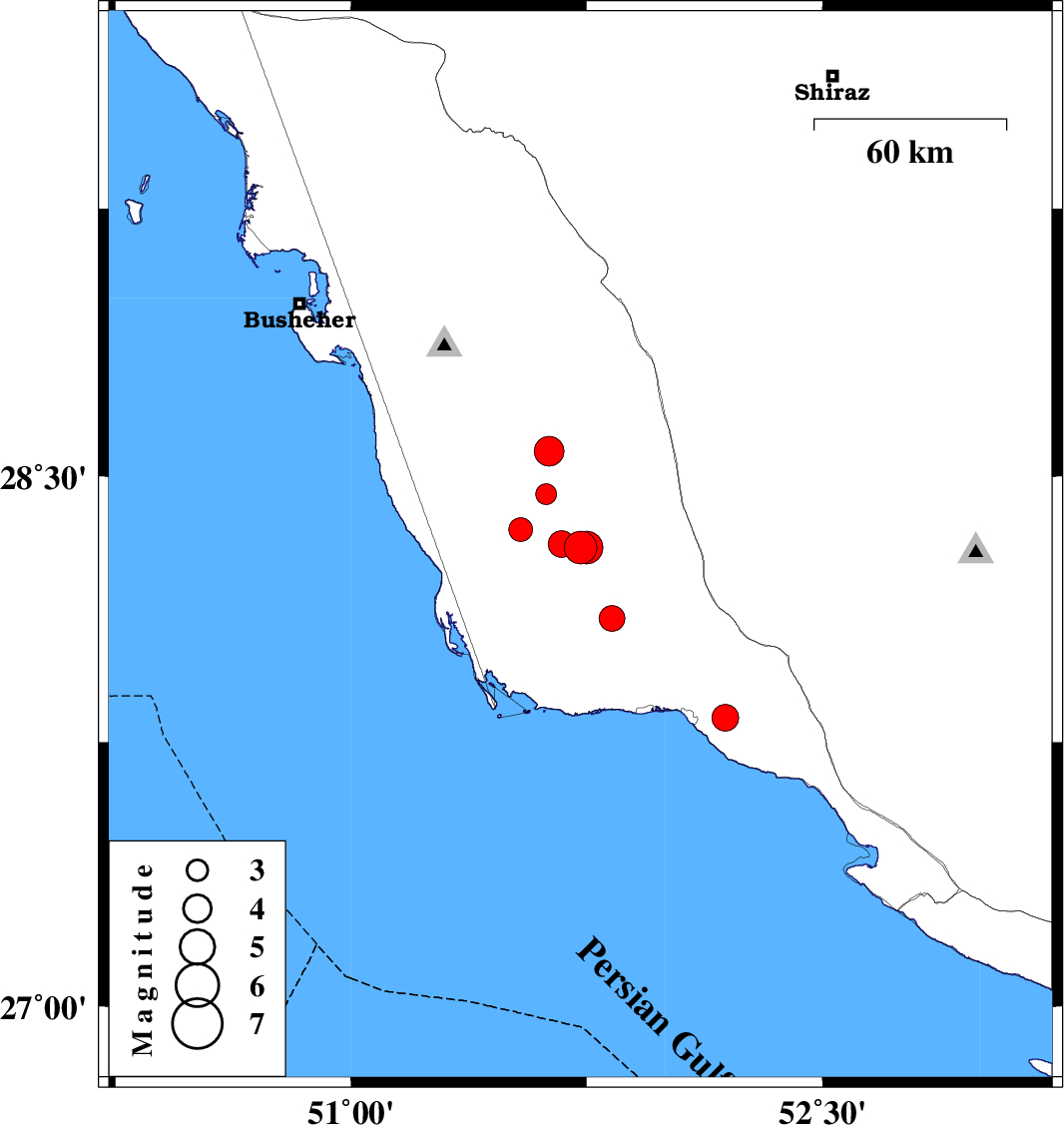 | 2013/08/03 | 13:21:36.6 | 17:51:36.6 | 27.82 | 52.19 | 35 | ML:3.8 | Bushehr Province, 13 km East of Bandar-e kangan | ||