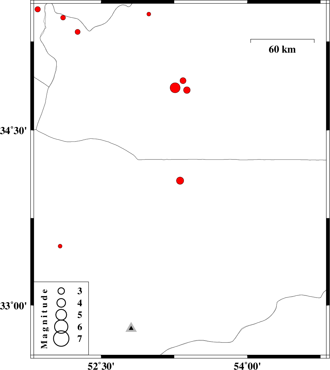 | 2013/07/18 | 09:46:22.2 | 14:16:22.2 | 33.51 | 52.08 | 6 | ML:1.9 | Esfahan Province, 16 km East of Natanz |