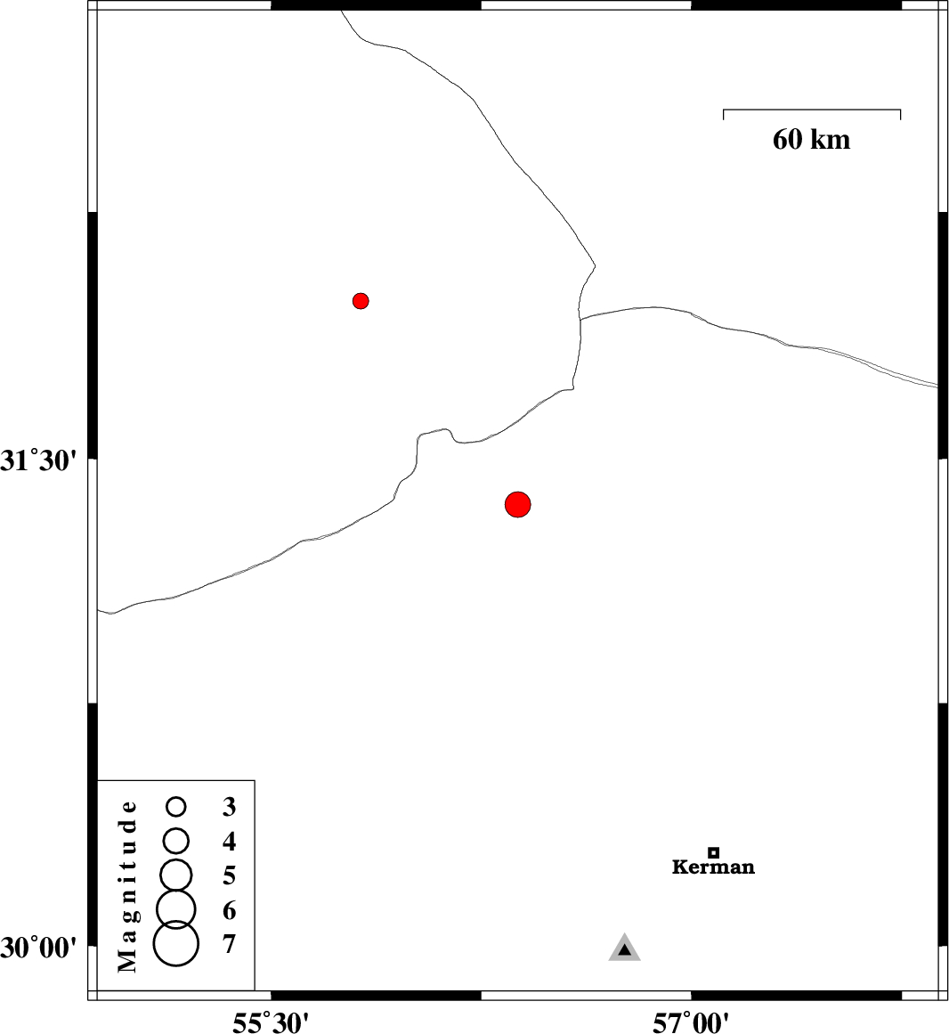 | 2013/08/08 | 02:17:43.0 | 06:47:43.0 | 31.98 | 55.82 | 14 | ML:2.6 | Yazd Province, 58 km North-East of Bafq |