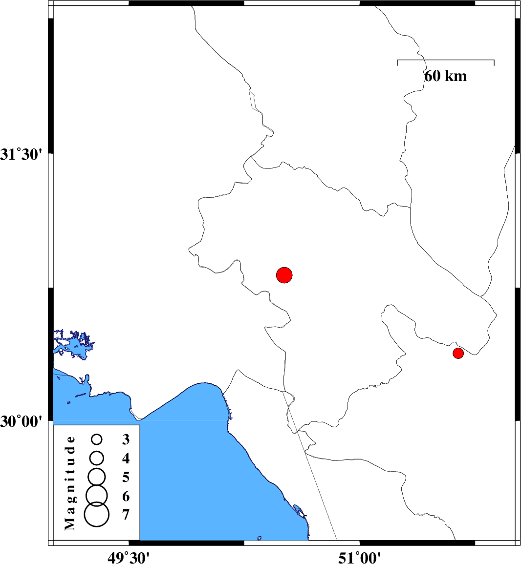 | 2013/08/14 | 19:50:07.1 | 00:20:07.1 | 30.82 | 50.51 | 18 | ML:4.6 | Kohkiluieh va boyerahmad Province, 7 km Dehdasht | ||
