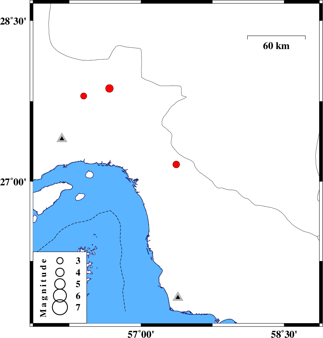 | 2013/08/15 | 06:15:45.7 | 10:45:45.7 | 27.16 | 57.37 | 30 | ML:3.3 | Hormozgan Province, 29 km East of Minab | ||