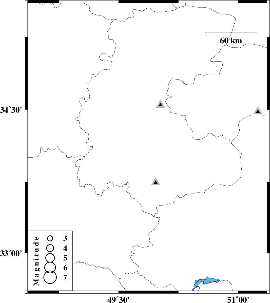2013/08/20 | 15:10:44.3 | 19:40:44.3 | 34.1 | 49.86 | 18 | ML:1.9 | Markazi Province, 16 km East of Arak |
