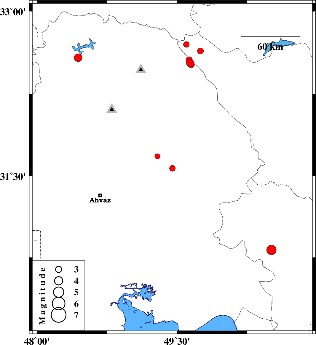 | 2013/08/12 | 15:00:08.8 | 19:30:08.8 | 32.53 | 49.64 | 14 | ML:3.6 | Khoozestan Province, 46 km West of Chelgard | ||