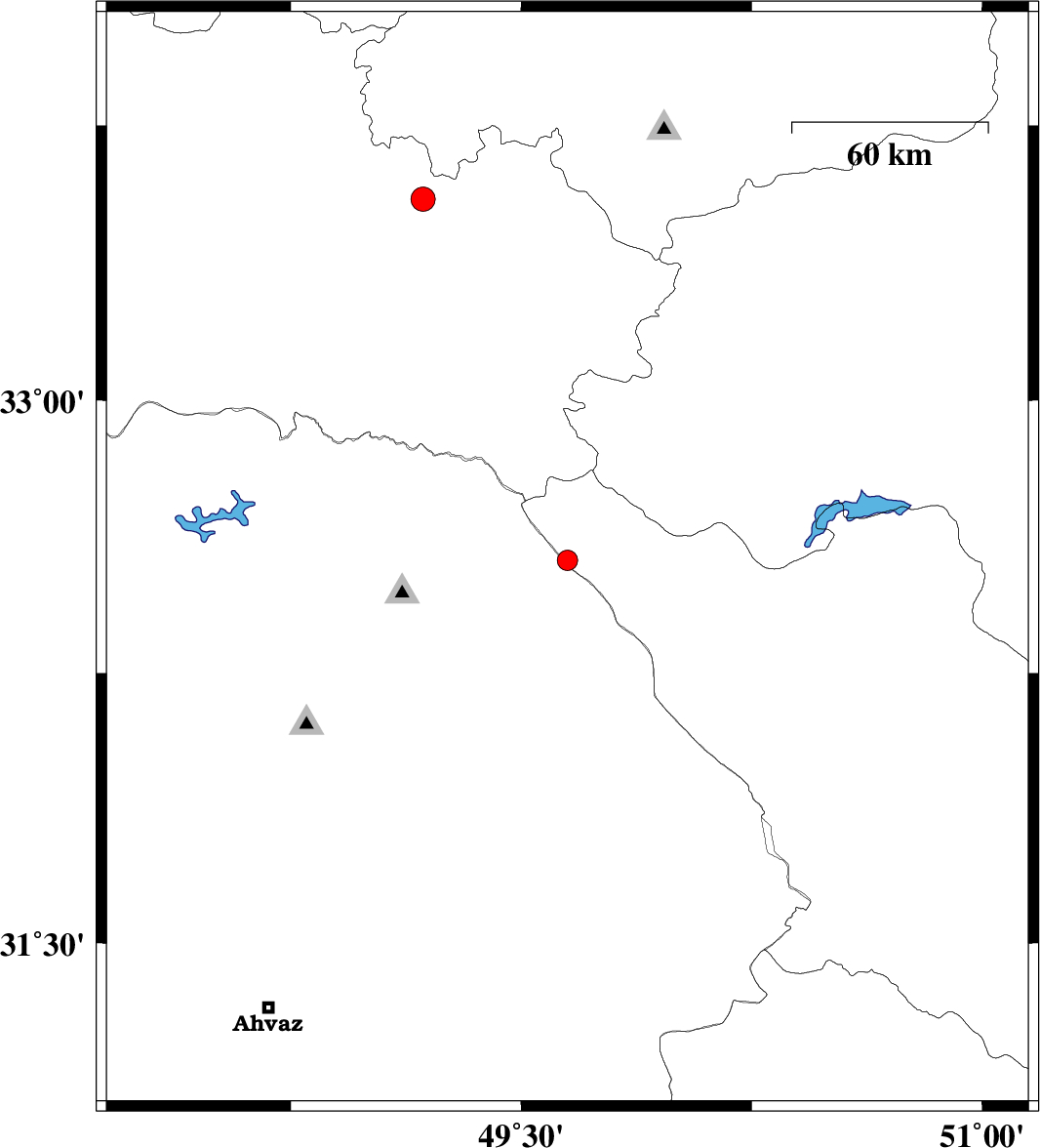 | 2013/09/03 | 20:04:58.5 | 00:34:58.5 | 33.55 | 49.18 | 14 | ML:3.5 | Lorestan Province, 12 km East of Dorud |