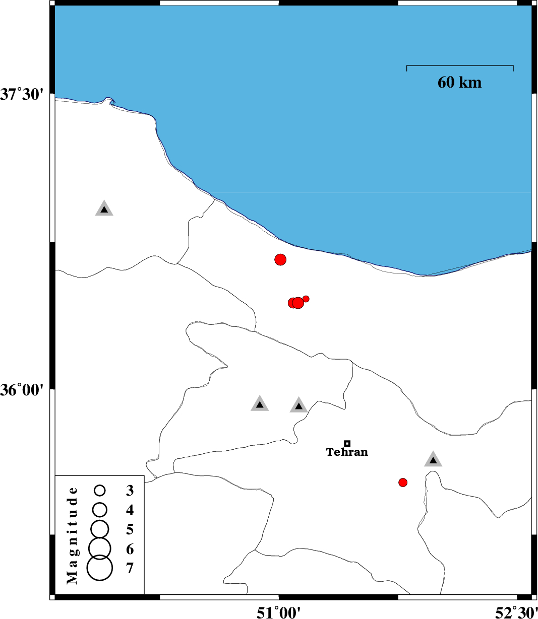 2013/09/12 | 02:32:32.4 | 07:02:32.4 | 36.66 | 51.01 | 14 | ML:3.2 | Mazandaran Province, 20 km South-East of Tonekabon | ||