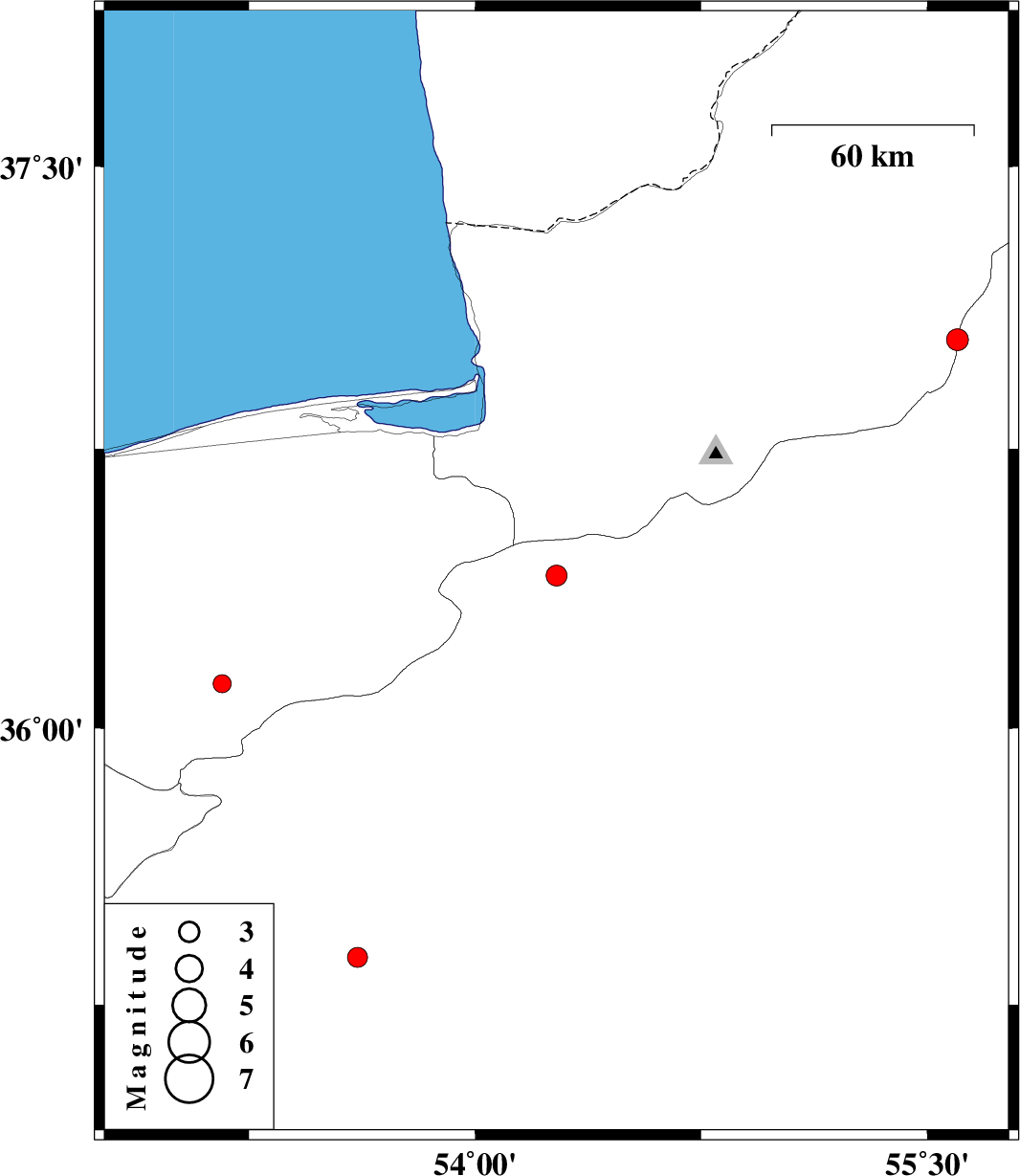 | 2013/08/18 | 02:43:01.7 | 07:13:01.7 | 35.38 | 53.61 | 26 | ML:3 | Semnan Province, 28 km South-East of Semnan |