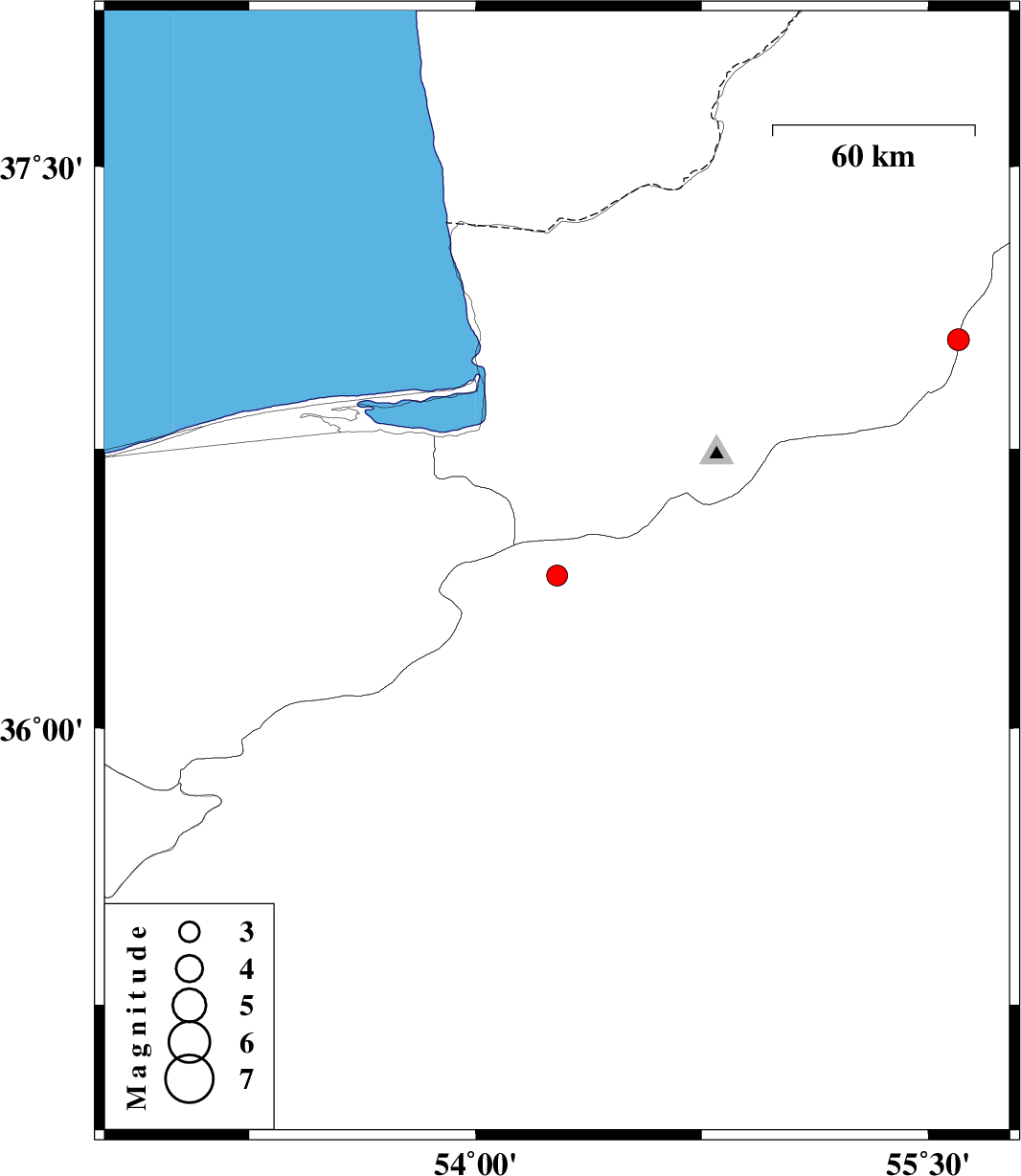 2013/09/08 | 20:39:03.2 | 01:09:03.2 | 37.04 | 55.6 | 18 | ML:3.2 | Semnan Province, 29 km South-East of Minodasht |