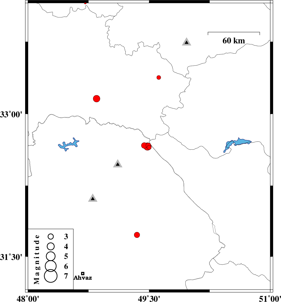 | 2013/09/16 | 18:19:09.3 | 22:49:09.3 | 32.65 | 49.5 | 18 | ML:2.4 | Khoozestan Province, 47 km North-East of Lali | ||