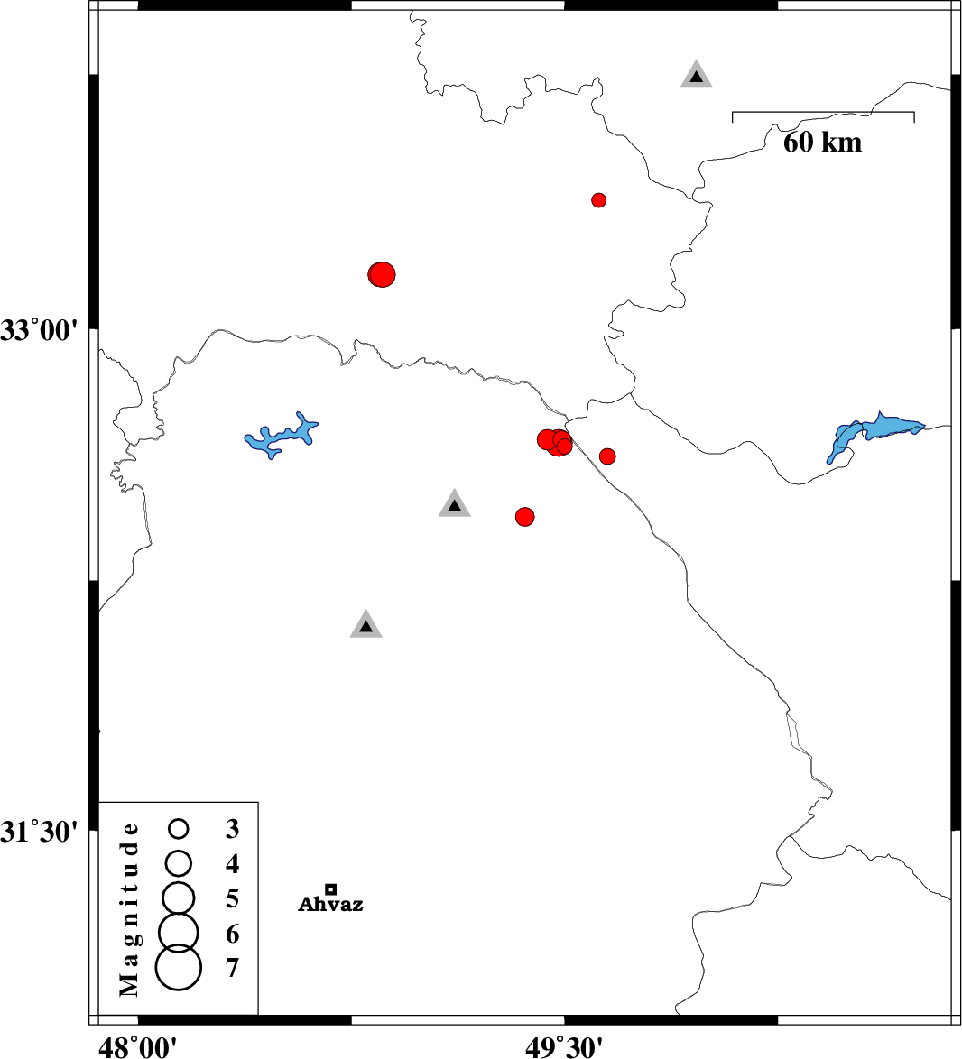 | 2013/09/16 | 18:19:09.3 | 22:49:09.3 | 32.65 | 49.5 | 18 | ML:2.4 | Khoozestan Province, 47 km North-East of Lali | ||