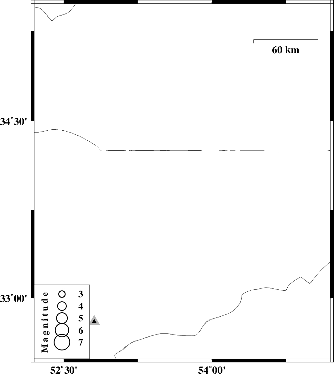 | 2013/09/22 | 23:58:39.1 | 03:28:39.1 | 33.98 | 53.7 | 16 | ML:3.4 | Esfahan Province, 136 km North-East of Nain |