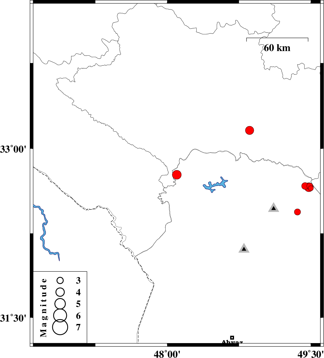 | 2013/09/16 | 18:19:09.3 | 22:49:09.3 | 32.65 | 49.5 | 18 | ML:2.4 | Khoozestan Province, 47 km North-East of Lali | ||