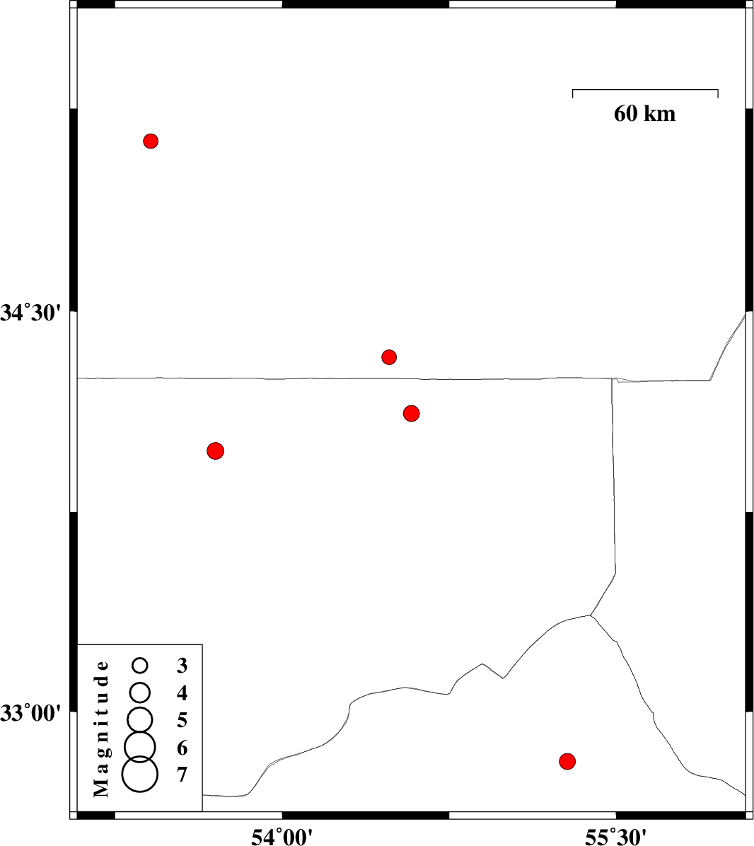 | 2013/09/24 | 06:14:25.2 | 09:44:25.2 | 34.12 | 54.58 | 15 | ML:3.3 | Esfahan Province, 229 km South-East of Damghan | ||