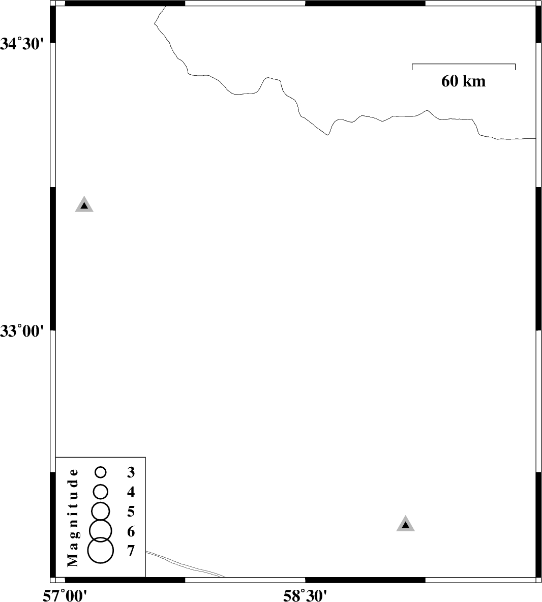 2013/10/02 | 07:15:20.6 | 10:45:20.6 | 33.19 | 58.44 | 16 | ML:3.4 | Khorasan(center) Province, 94 km South-East of Ferdows |
