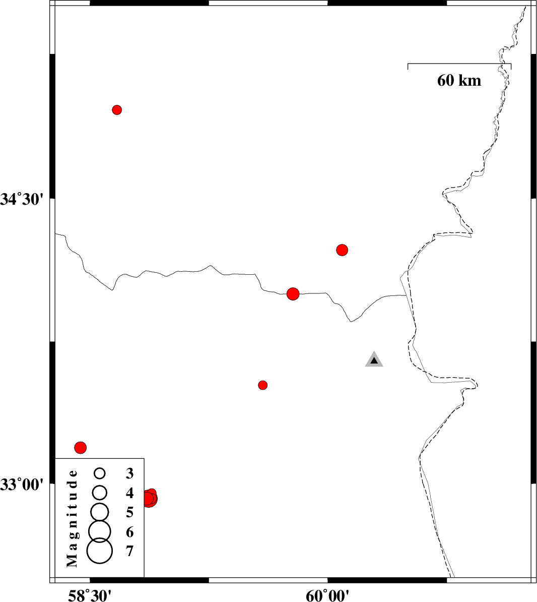 2013/10/05 | 15:56:27.1 | 19:26:27.1 | 32.92 | 58.85 | 14 | ML:2.9 | Khorasan(south) Province, 35 km West of Birjand | ||
