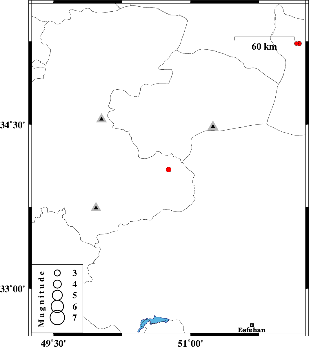 2013/10/27 | 19:57:43.6 | 23:27:43.6 | 35.23 | 52.19 | 18 | ML:2.3 | Semnan Province, 14 km West of Garmsar |