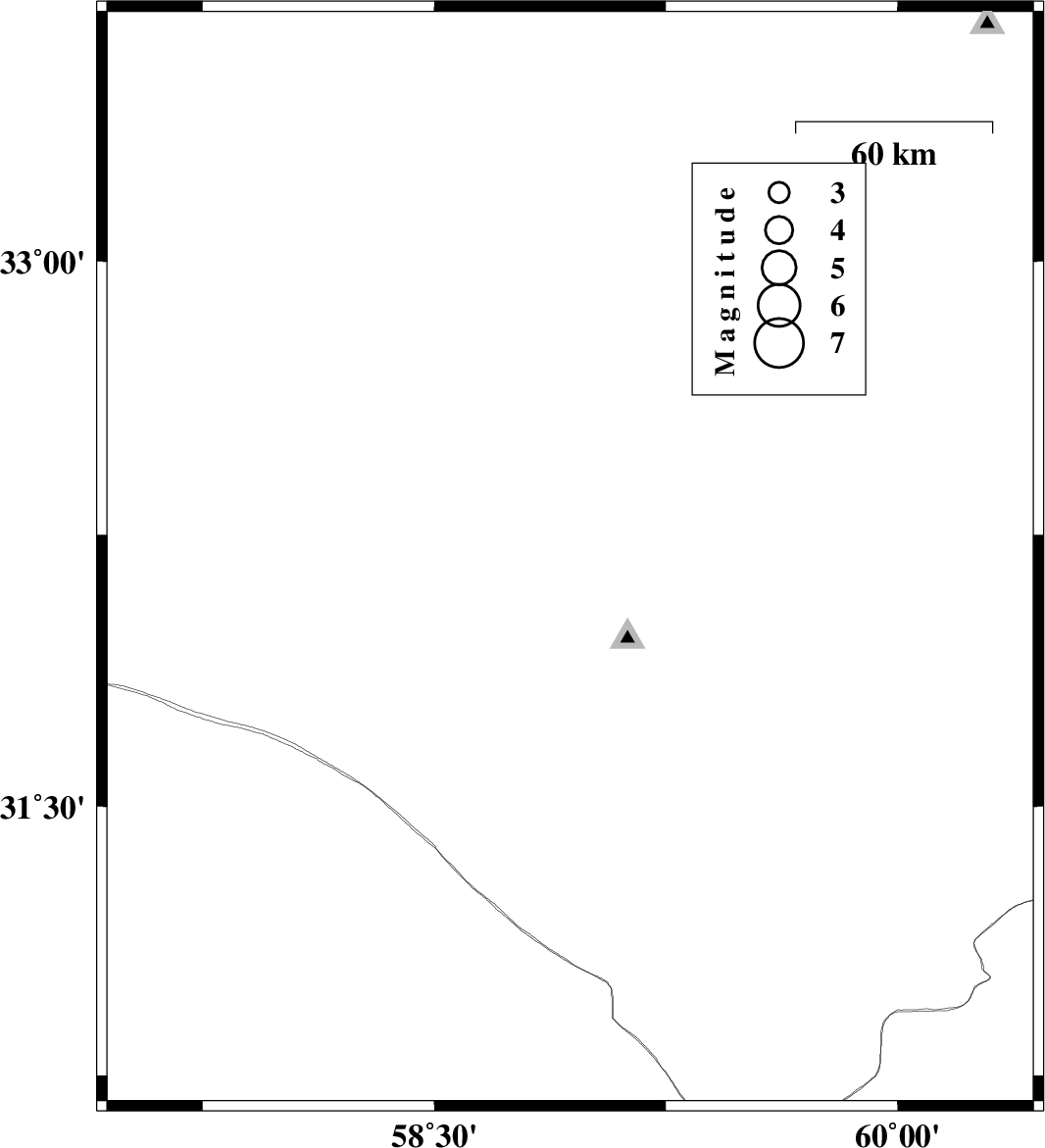 2013/10/31 | 17:05:42.3 | 20:35:42.3 | 32.18 | 58.94 | 14 | ML:1.9 | Khorasan(south) Province, 84 km South-West of Birjand | ||