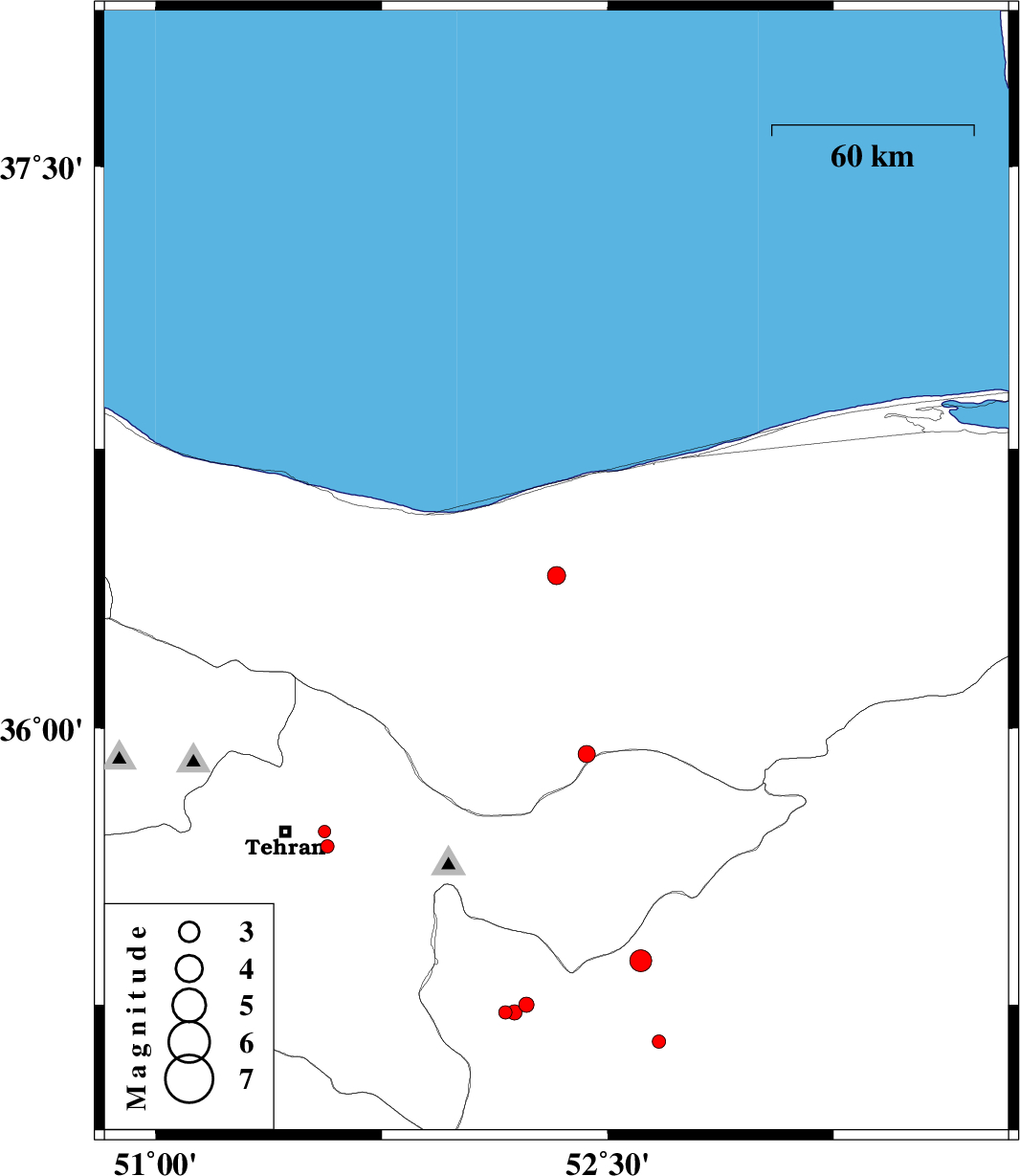 2013/10/29 | 04:55:51.7 | 08:25:51.7 | 35.25 | 52.23 | 18 | ML:2.3 | Semnan Province, 10 km West of Garmsar | ||