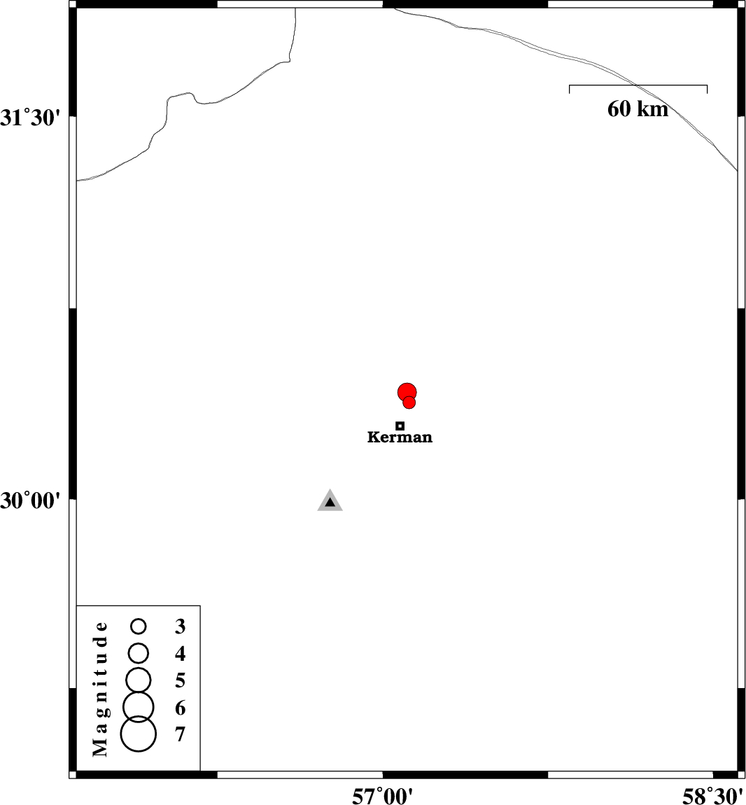 | 2013/11/12 | 02:31:22.2 | 06:01:22.2 | 30.38 | 57.12 | 17 | ML:2.6 | Kerman Province, 11 km Kerman | ||
