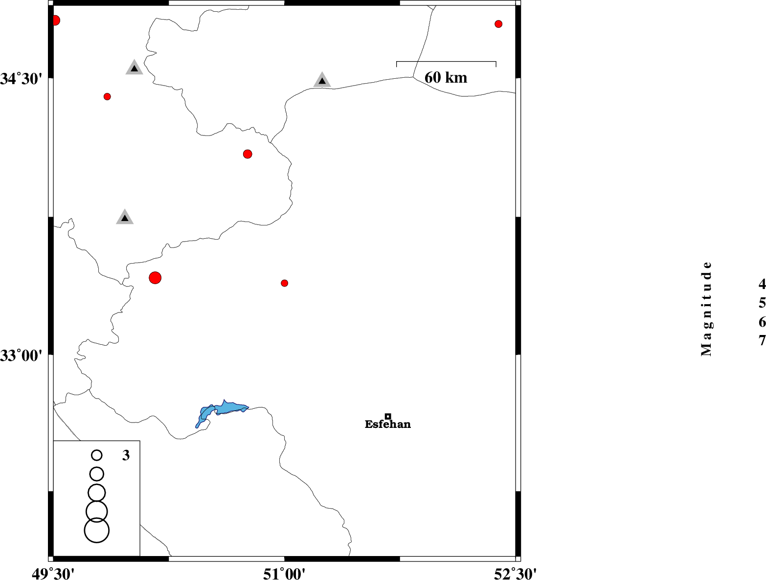 2013/11/02 | 11:20:01.0 | 14:50:01.0 | 33.42 | 50.16 | 14 | ML:3.5 | Esfahan Province, 13 km West of Golpayegan | ||