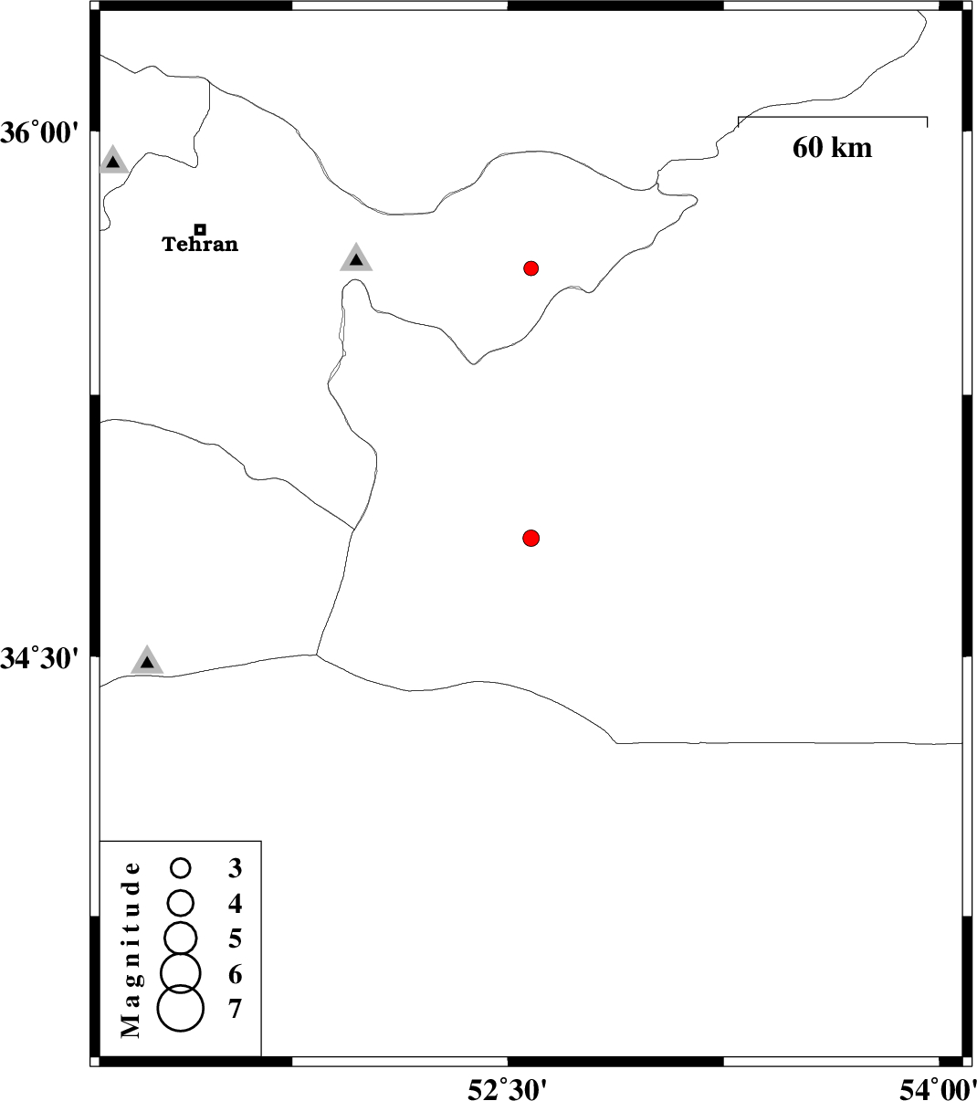 2013/11/14 | 09:22:22.7 | 12:52:22.7 | 34.84 | 52.58 | 14 | ML:2.5 | Semnan Province, 47 km South-East of Garmsar | ||