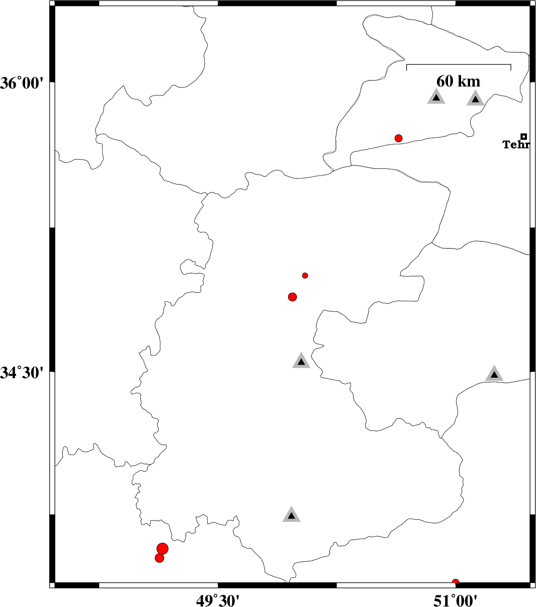 2013/11/09 | 04:09:09.5 | 07:39:09.5 | 35 | 50.05 | 6 | ML:1.6 | Markazi Province, 28 km West of Saveh |