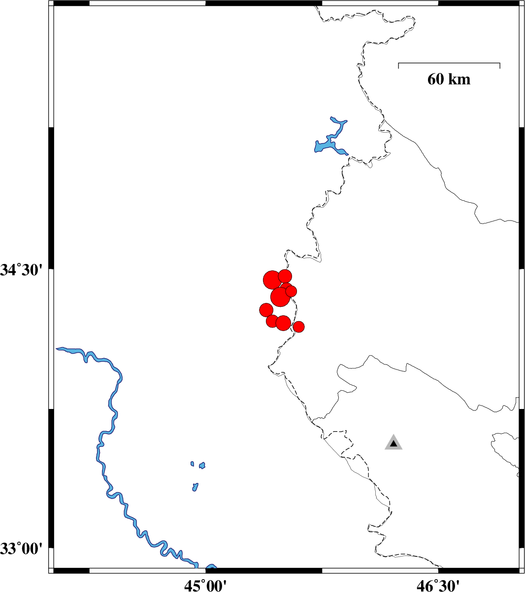2013/11/22 20:43:46.7 00:13:46.7 34.2245.4315 ML:3.6 Iraq, 36 km South-West of Qasr-E-Shirin