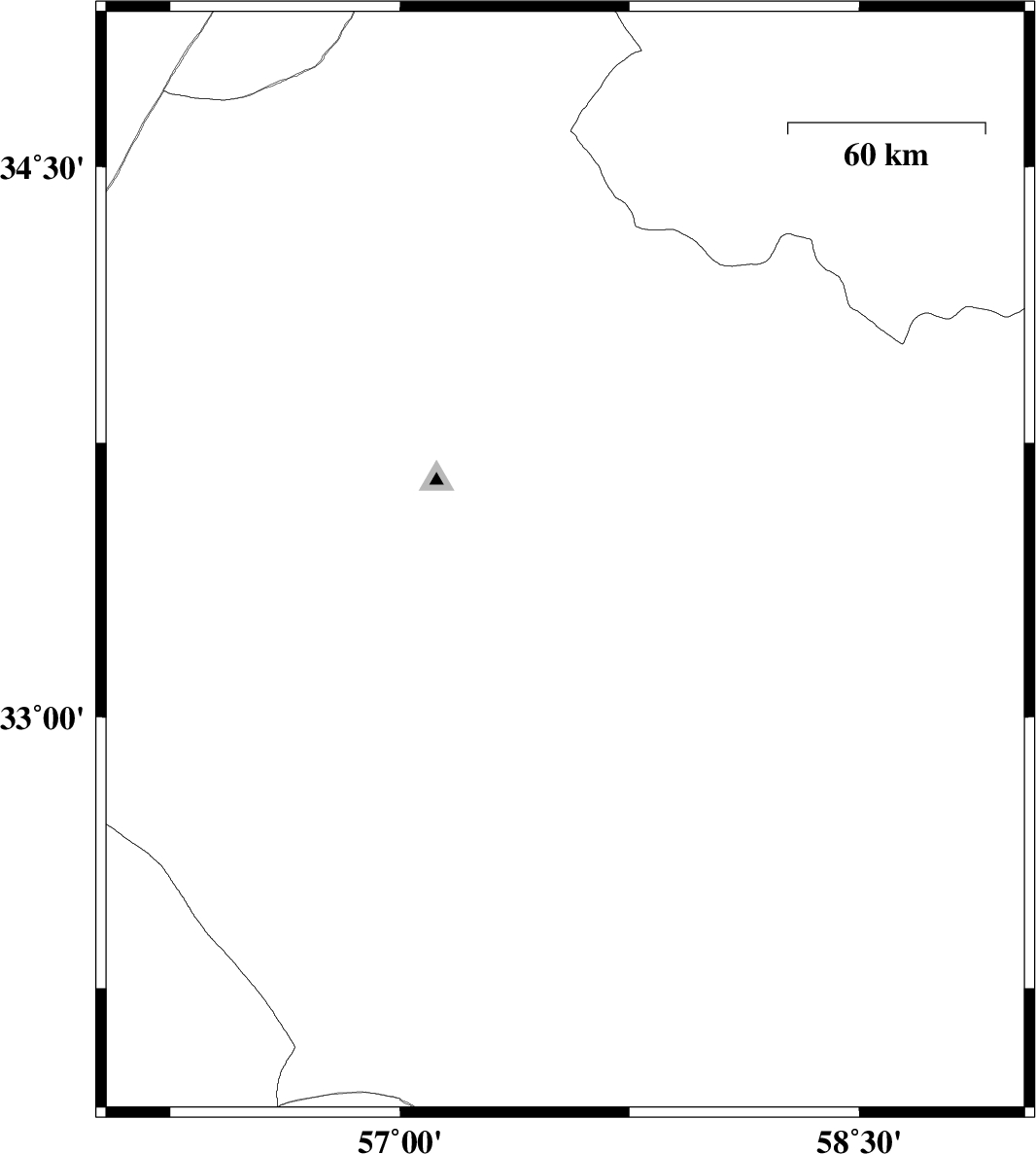 2013/11/27 | 09:13:51.4 | 12:43:51.4 | 33.42 | 57.54 | 15 | ML:2.7 | Yazd Province, 61 km South-East of Tabas | ||