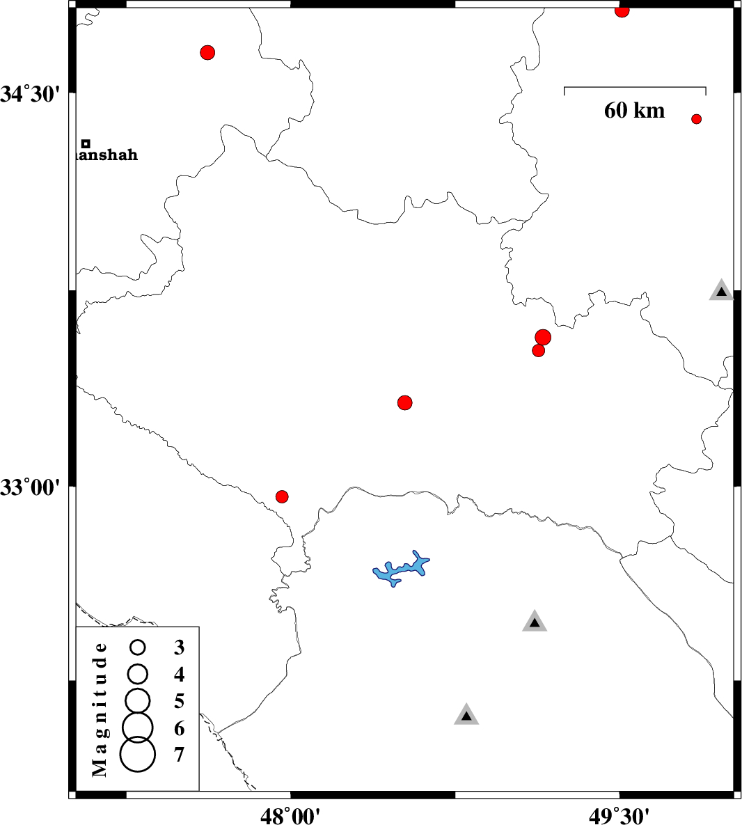2013/11/12 | 09:50:14.7 | 13:20:14.7 | 33.52 | 49.13 | 6 | ML:2.5 | Lorestan Province, 6 km Dorud | ||