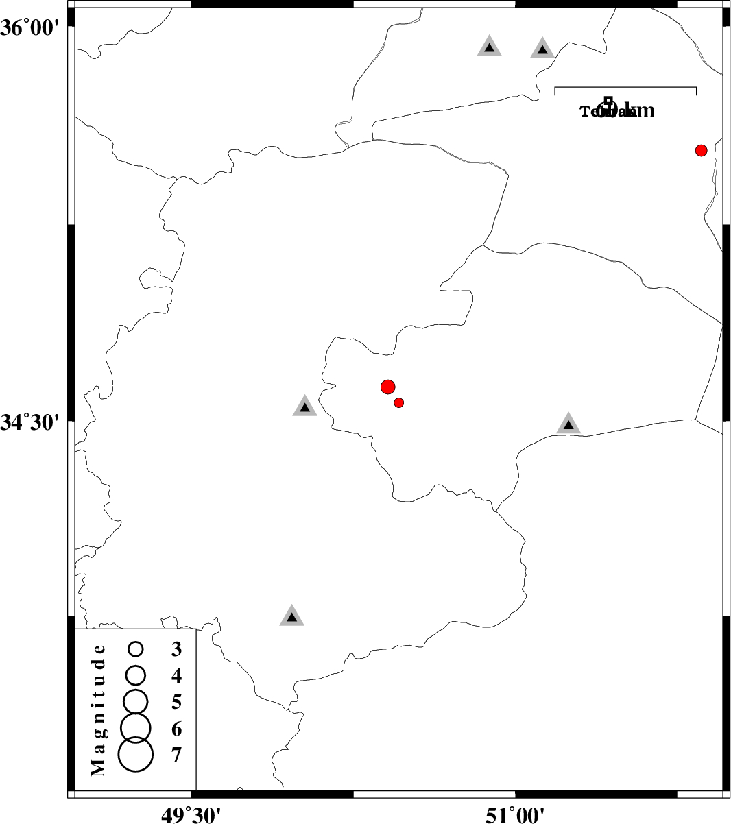 2013/12/03 | 19:56:05.8 | 23:26:05.8 | 34.57 | 50.46 | 14 | ML:2 | Qom Province, 38 km West of Qom | ||
