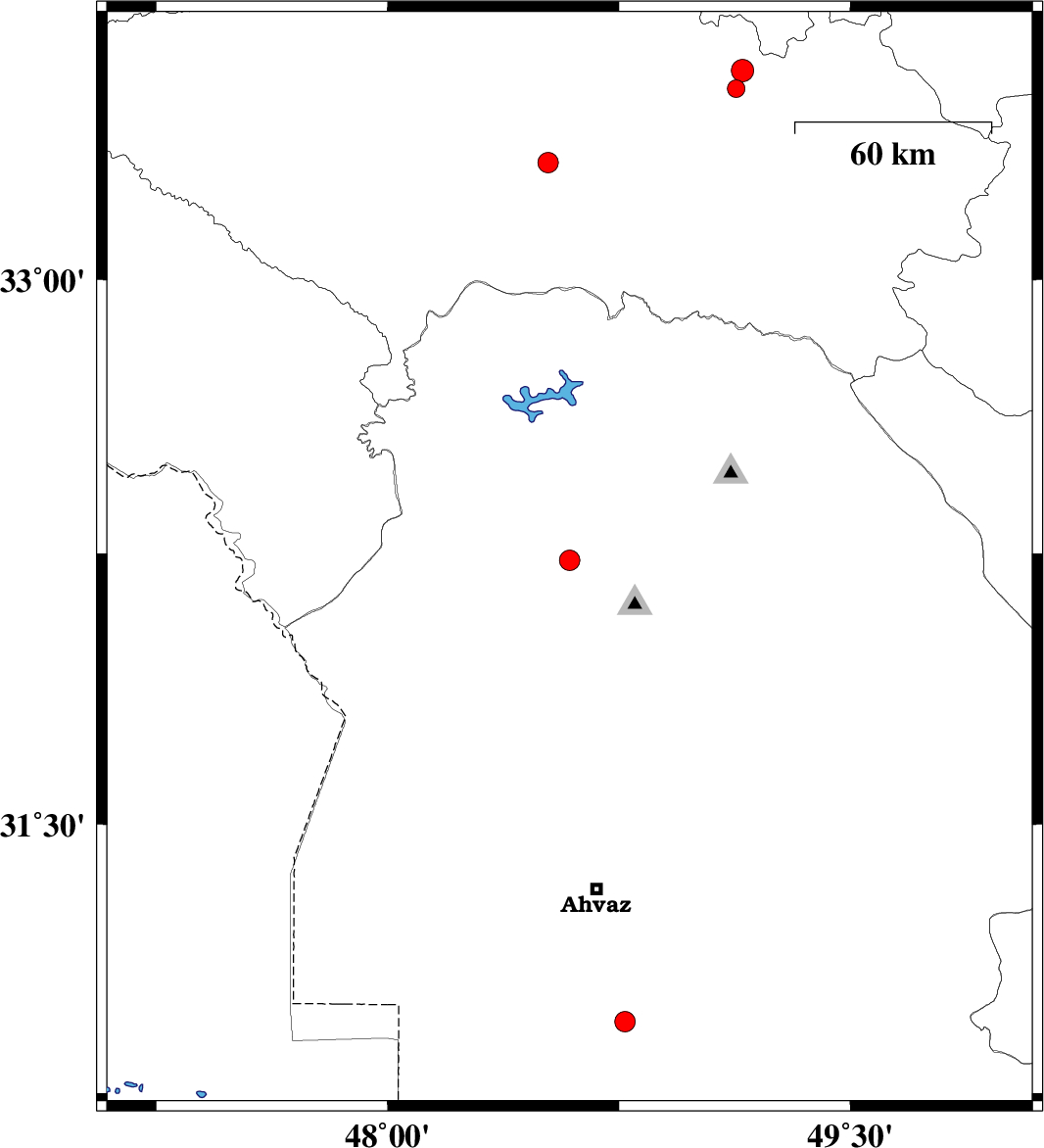 2013/11/06 | 17:11:32.6 | 20:41:32.6 | 30.95 | 48.77 | 15 | ML:2.9 | Khoozestan Province, 35 km North-East of Shadegan |