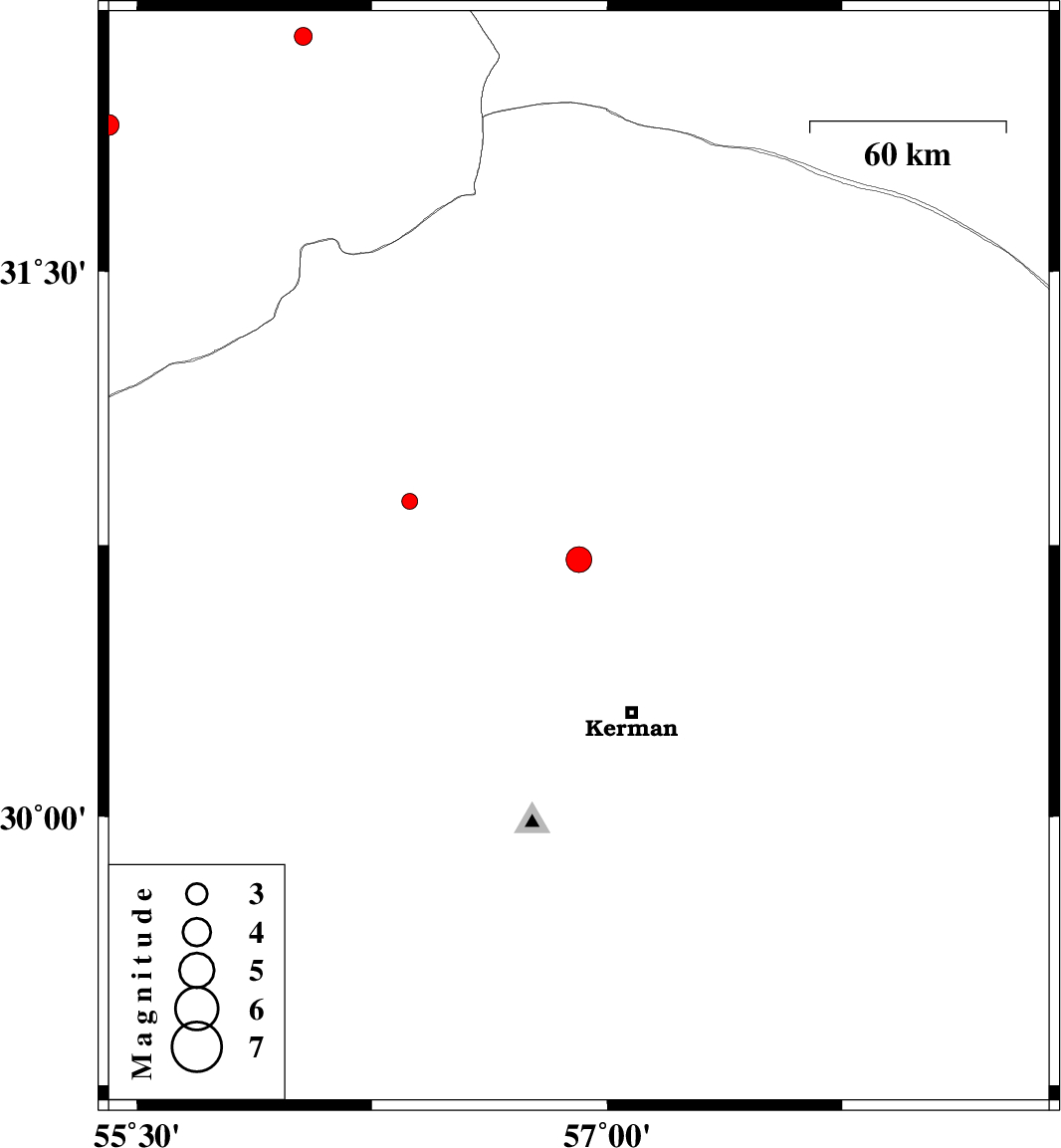 2013/12/05 | 10:18:59.8 | 13:48:59.8 | 30.87 | 56.37 | 15 | ML:2.2 | Kerman Province, 20 km West of Zarand |