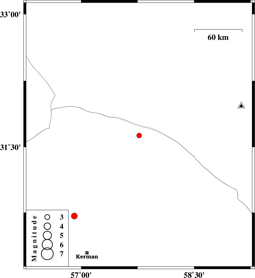 2013/12/12 | 11:41:05.3 | 15:11:05.3 | 30.71 | 56.91 | 17 | ML:3.7 | Kerman Province, 35 km South-East of Zarand |