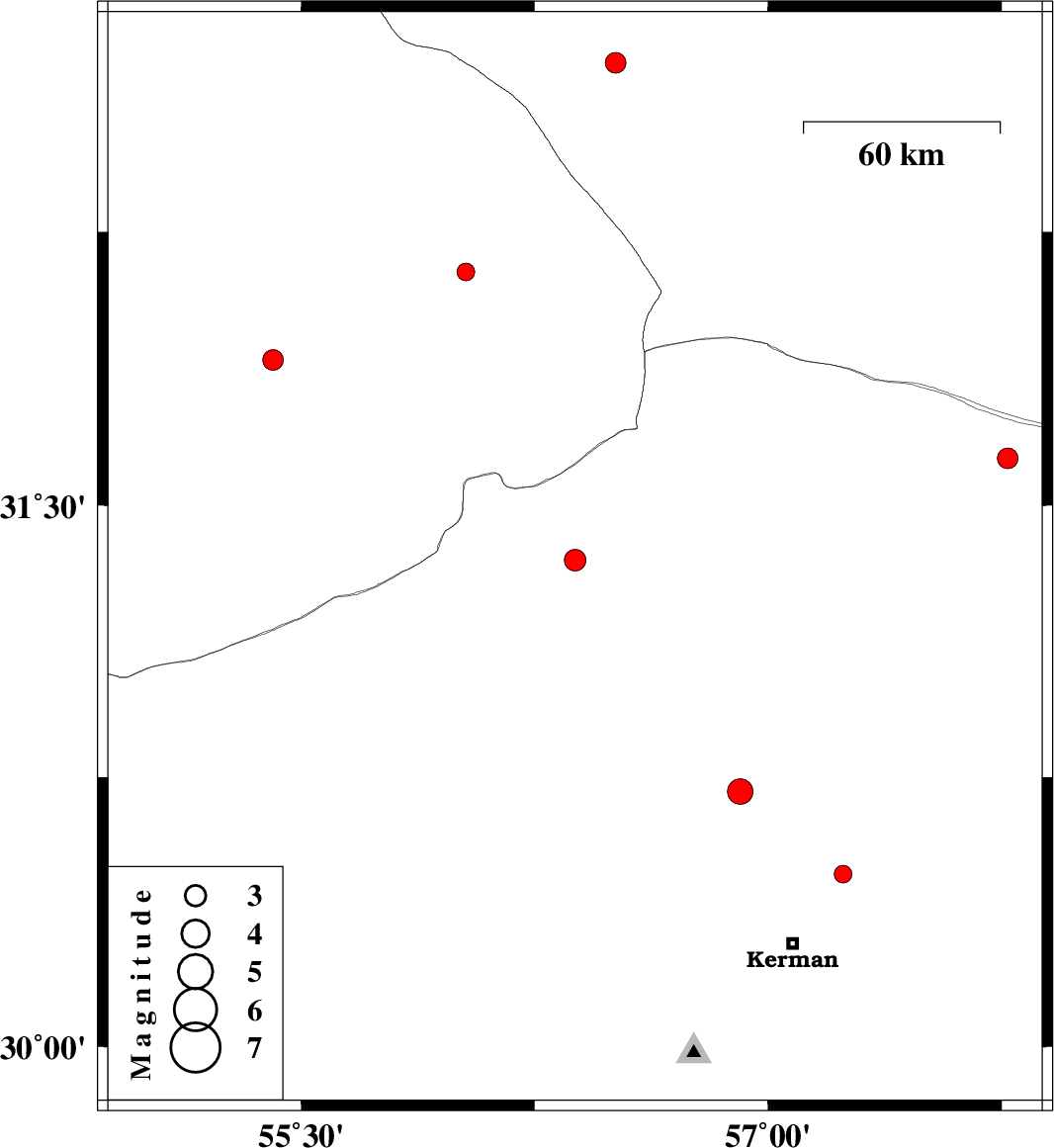 2013/12/14 | 20:56:53.1 | 00:26:53.1 | 31.63 | 57.77 | 14 | ML:2.9 | Kerman Province, 99 km North-East of Ravar | ||