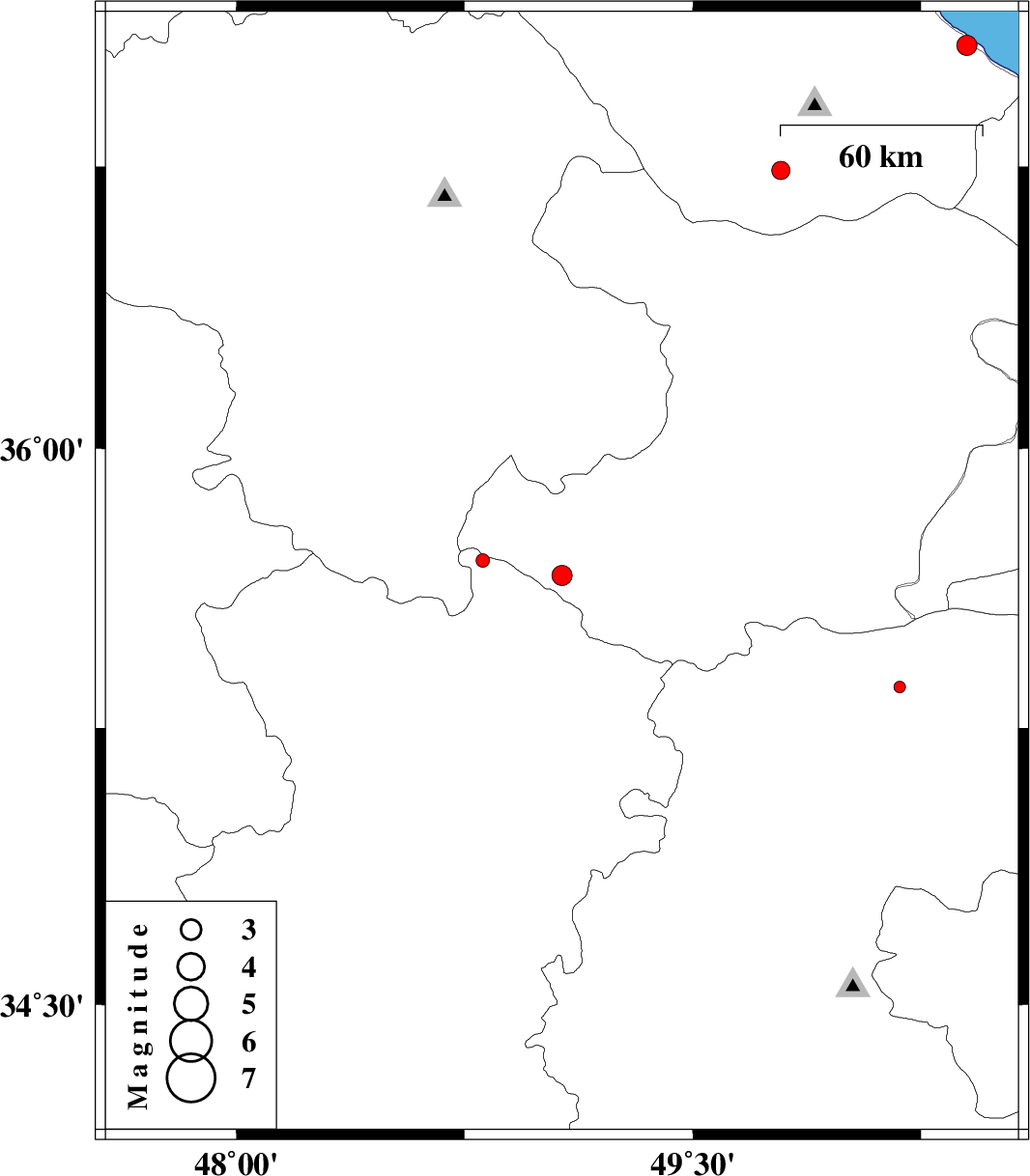 2014/01/06 | 20:39:42.4 | 00:09:42.4 | 35.7 | 48.81 | 14 | ML:2 | Hamedan Province, 41 km North-West of Razan | ||