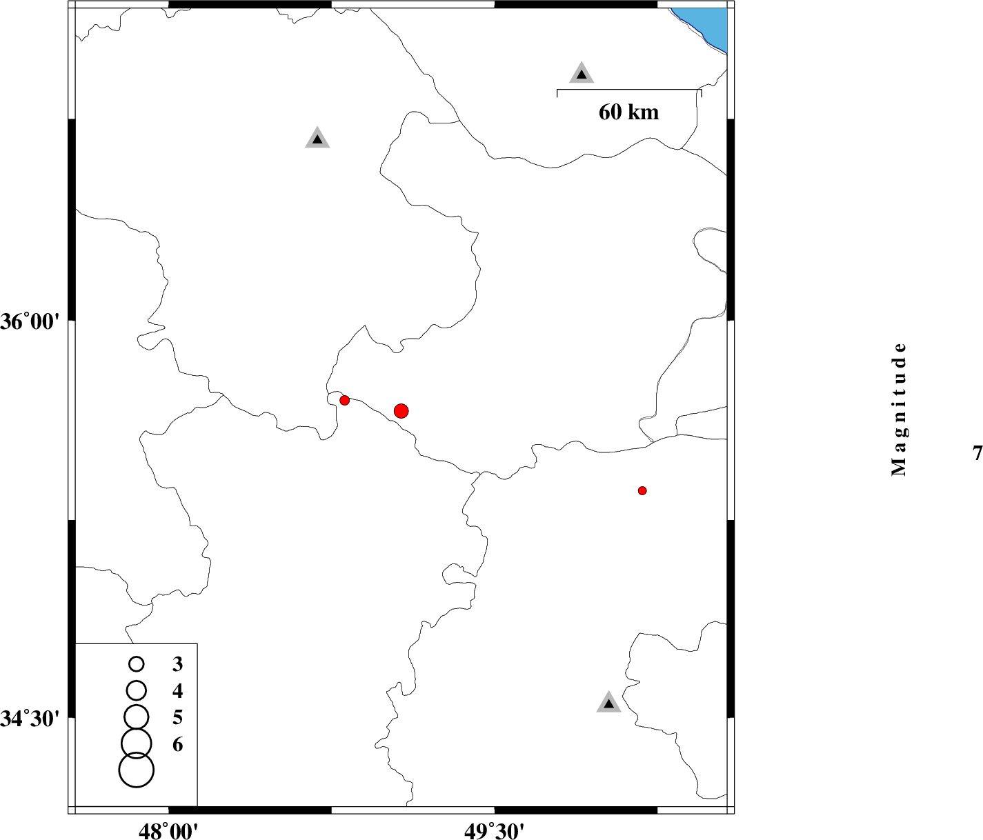 2014/01/06 | 20:39:42.4 | 00:09:42.4 | 35.7 | 48.81 | 14 | ML:2 | Hamedan Province, 41 km North-West of Razan | ||