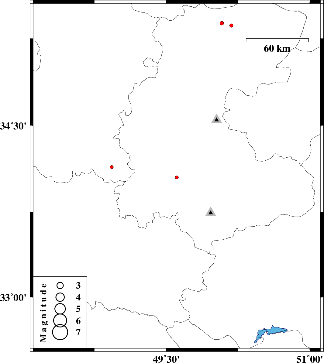 2014/01/06 | 11:13:40.1 | 14:43:40.1 | 35.36 | 50.18 | 14 | ML:1.7 | Markazi Province, 41 km North-West of Saveh |