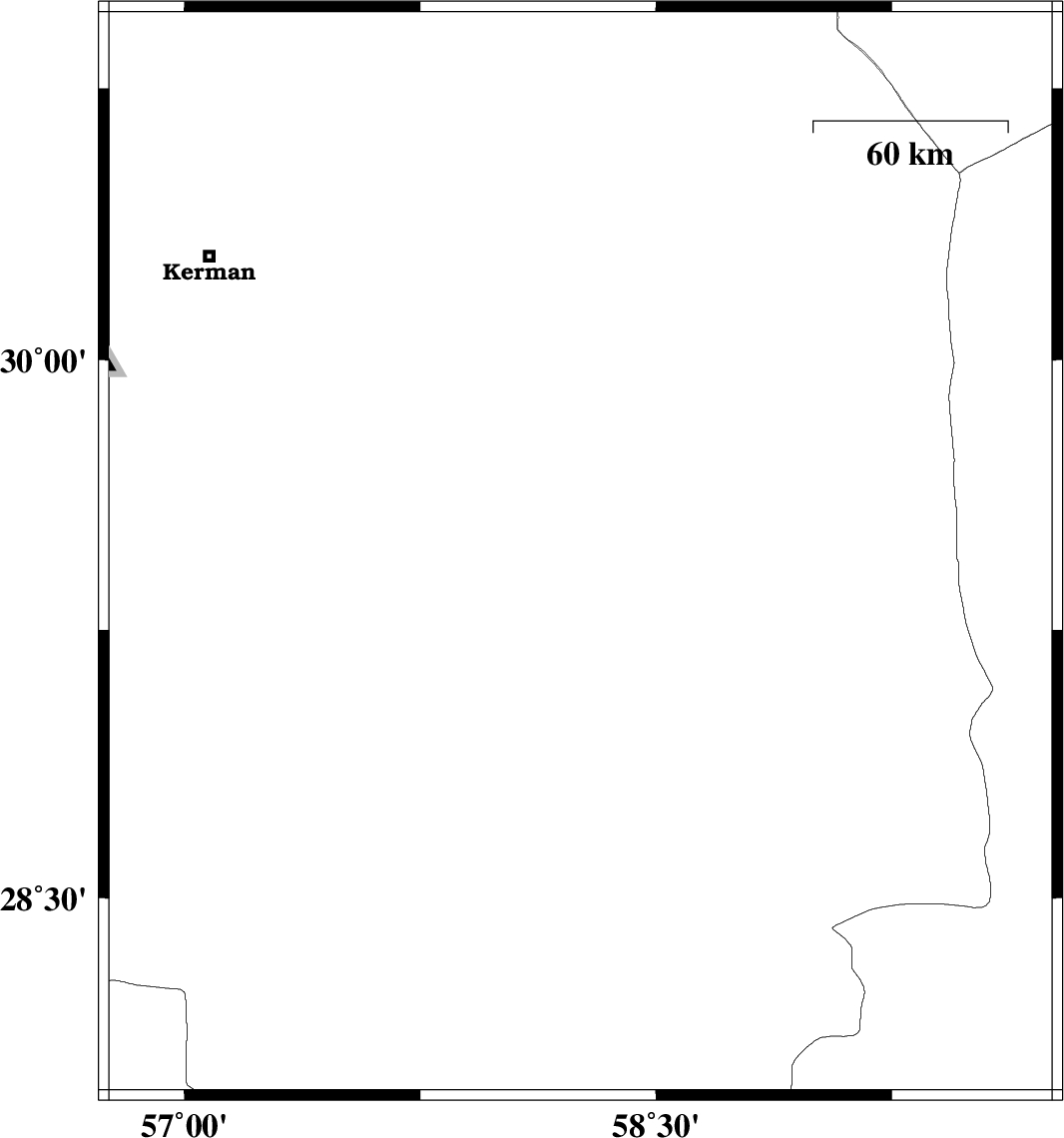 2014/01/24 | 17:11:36.5 | 20:41:36.5 | 29.46 | 58.26 | 37 | ML:2.5 | Kerman Province, 40 km North of Bam |