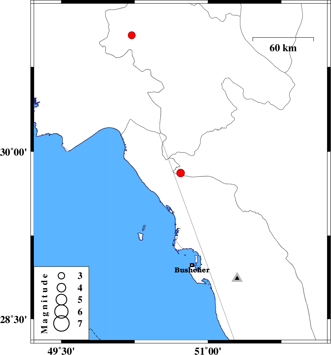 2014/01/26 | 18:09:03.7 | 21:39:03.7 | 29.81 | 50.72 | 17 | ML:3.7 | Fars Province, 33 km North-East of Bandar-e genaveh | ||