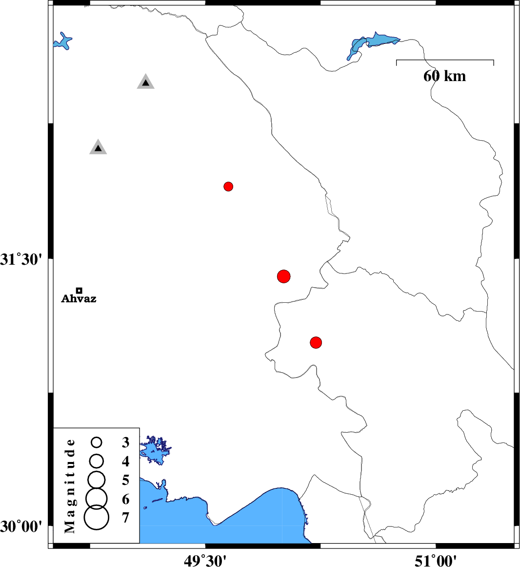 2014/01/26 | 22:57:33.6 | 02:27:33.6 | 31.4 | 50.01 | 16 | ML:3.8 | Khoozestan Province, 17 km South-East of Bagh Malek | ||