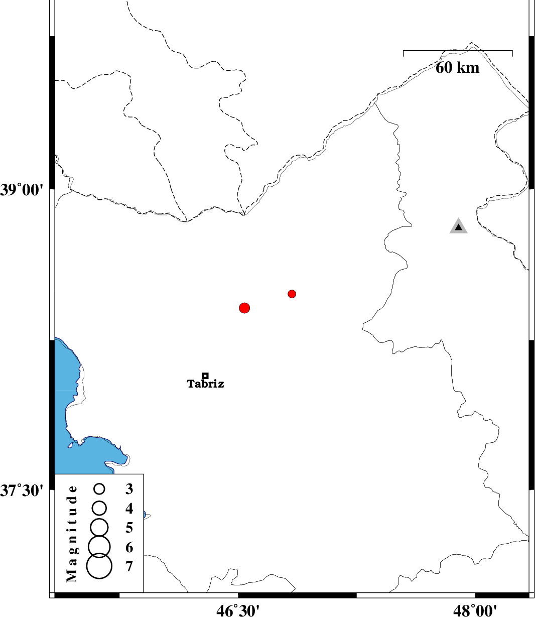 | 2014/01/27 | 10:39:40.2 | 14:09:40.2 | 38.41 | 46.54 | 14 | ML:3 | Azarbaijan Sharghi Province, 43 km North-East of Tabriz |