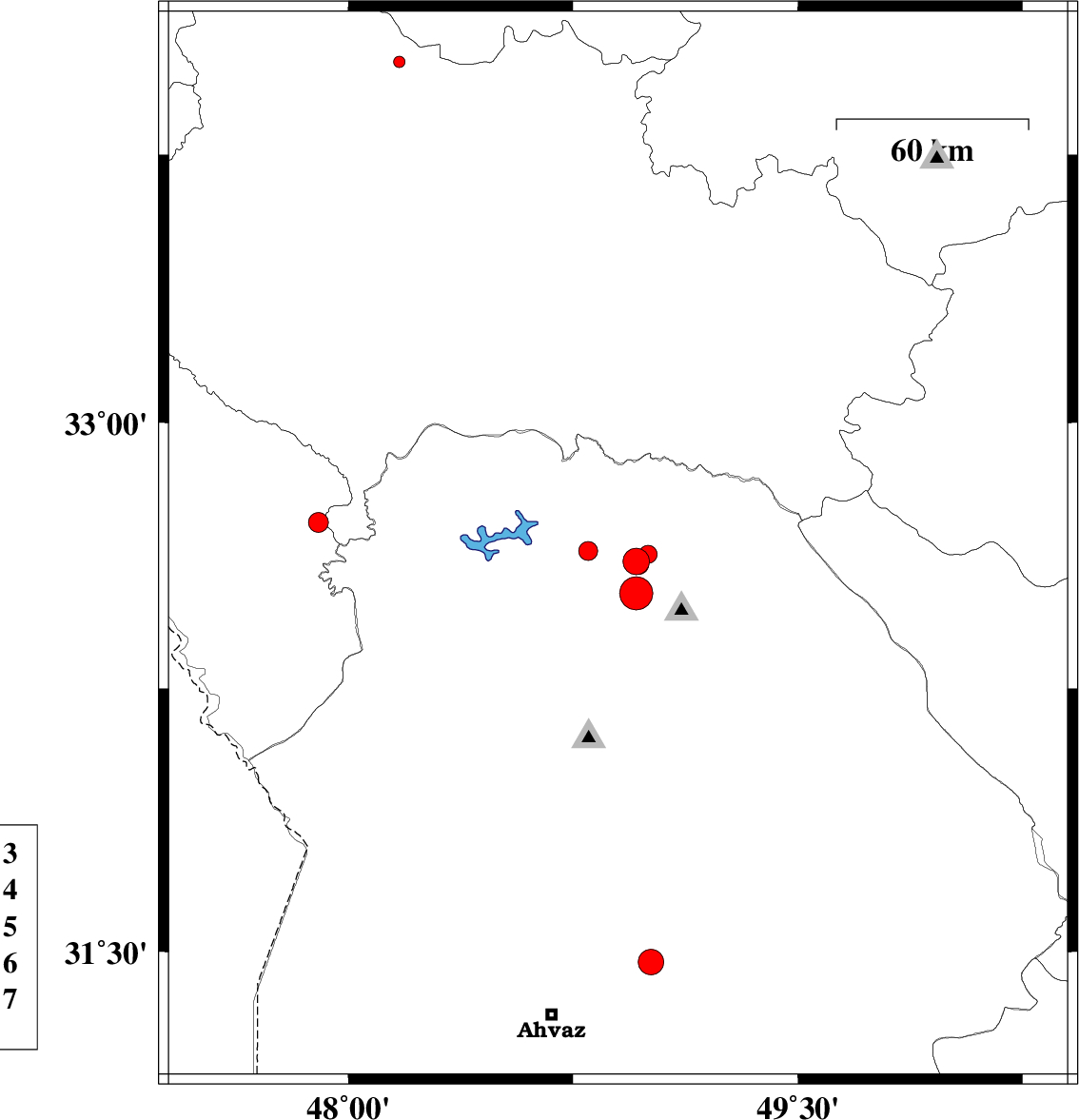 2014/01/29 | 17:22:38.9 | 20:52:38.9 | 32.65 | 48.9 | 14 | ML:3 | Khoozestan Province, 35 km North-West of Lali | ||
