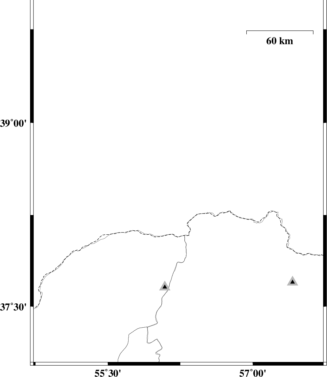 | 2014/01/14 | 22:56:36.2 | 02:26:36.2 | 37.59 | 55.36 | 16 | ML:3.1 | Golestan Province, 26 km North-West of Kalaleh |