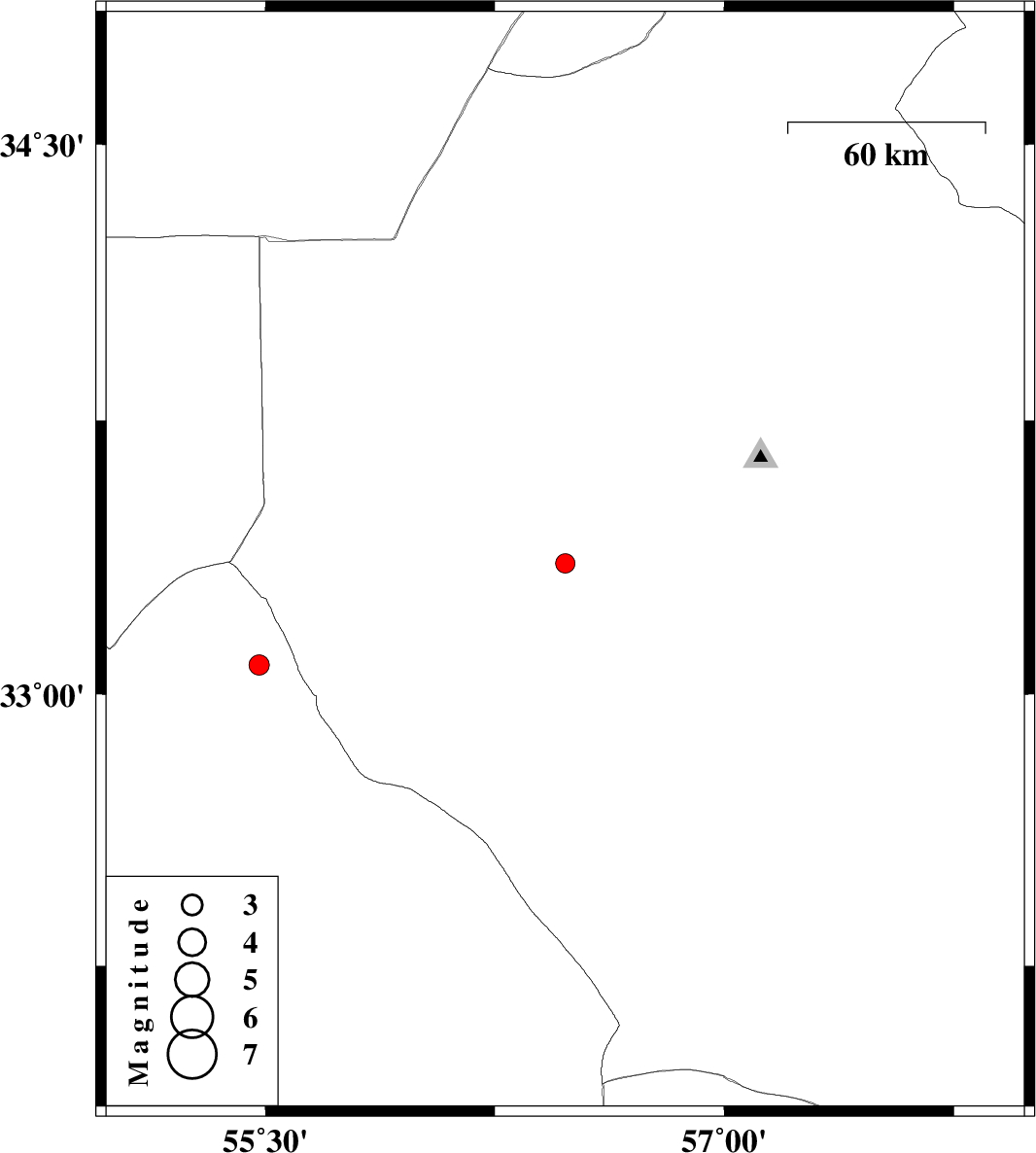 2014/02/15 | 12:14:08.9 | 15:44:08.9 | 33.08 | 55.48 | 15 | ML:3 | Yazd Province, 164 km North of Bafq |