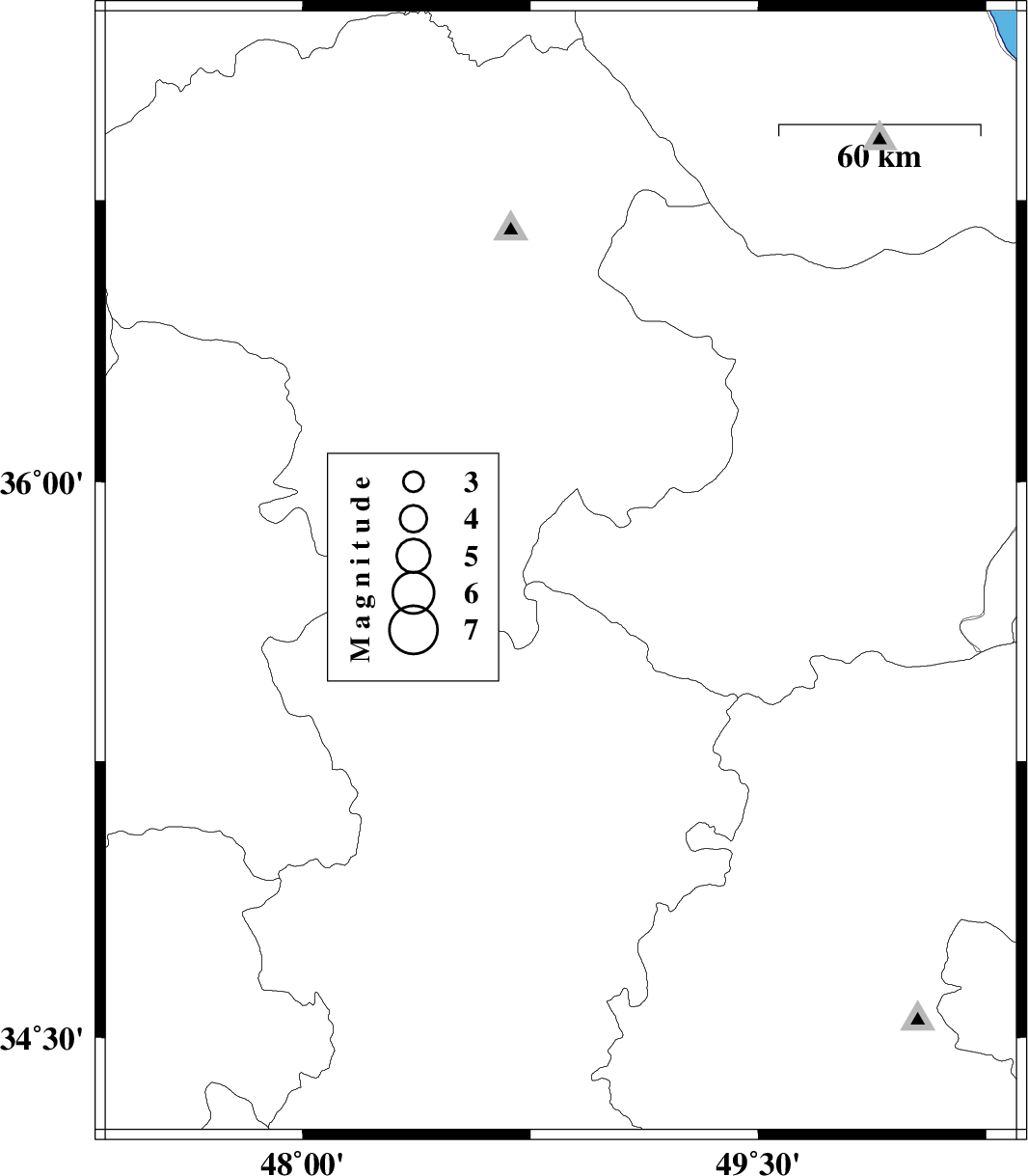 2014/03/03 | 00:13:13.7 | 03:43:13.7 | 35.75 | 48.85 | 14 | ML:2.4 | Ghazvin Province, 44 km North-West of Razan | ||