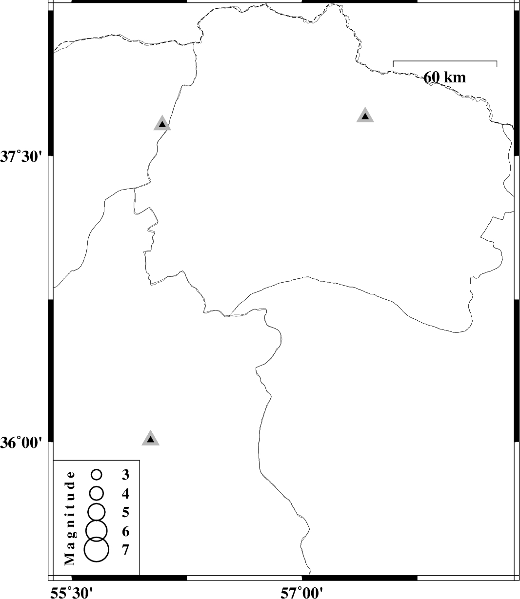 | 2014/03/05 | 05:29:58.0 | 08:59:58.0 | 36.79 | 56.88 | 14 | ML:2.6 | Khorasan(center) Province, 47 km South-East of Jajarm |