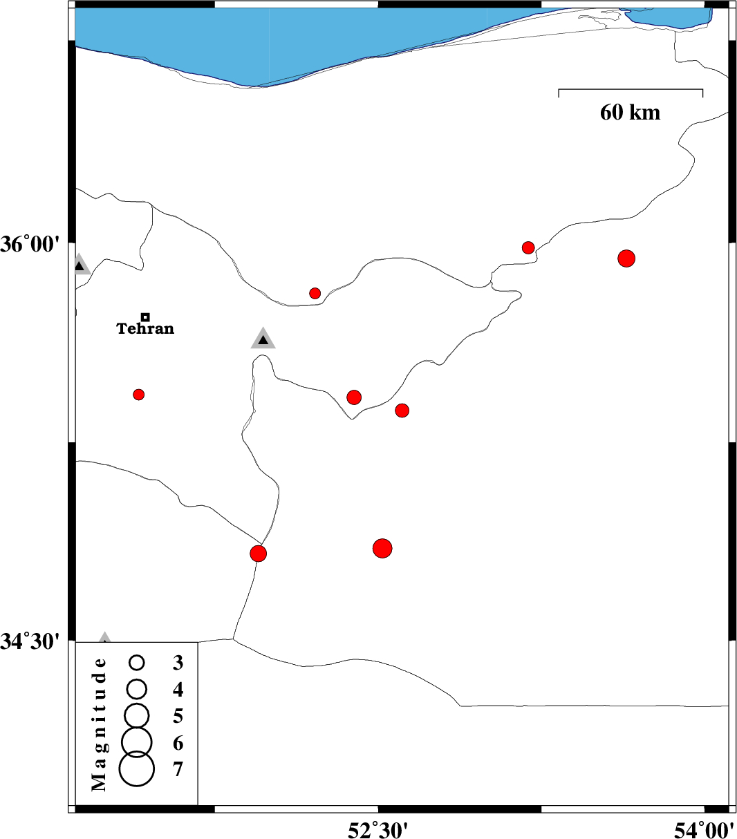 2014/03/02 | 00:57:47.4 | 04:27:47.4 | 34.85 | 52.52 | 14 | ML:3.9 | Semnan Province, 45 km South-East of Garmsar | ||